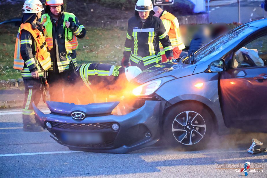 alle die Verunfallten Fahrzeuge verlassen, ein brennender PKW