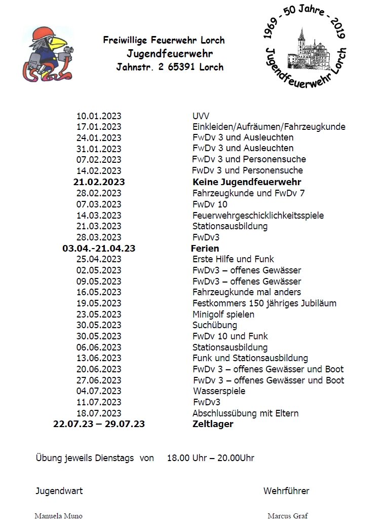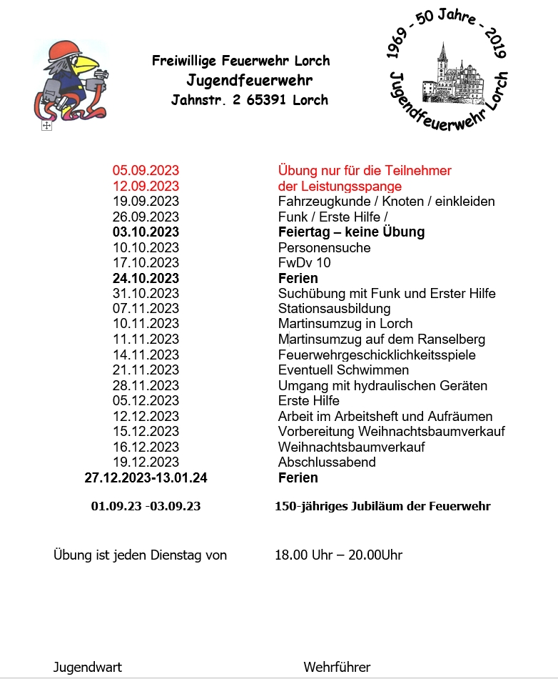Mit freundlichen Grüßen Die Jugendfeuerwehr der Stadt Lorch.
