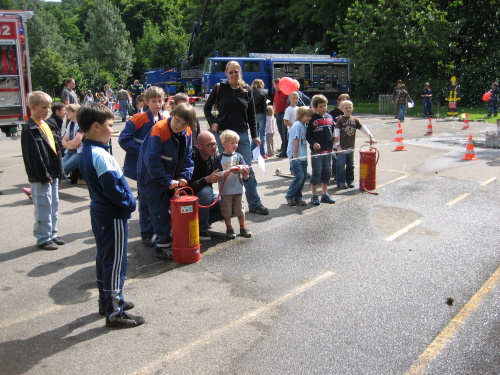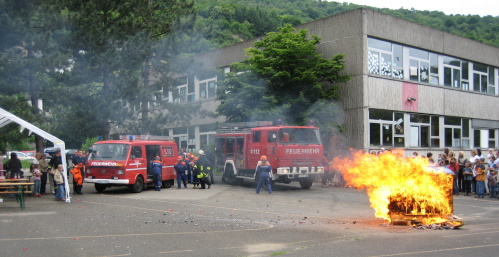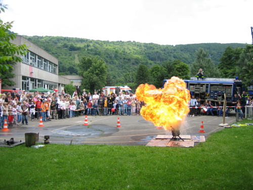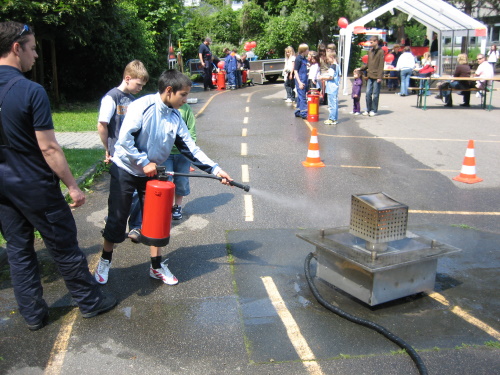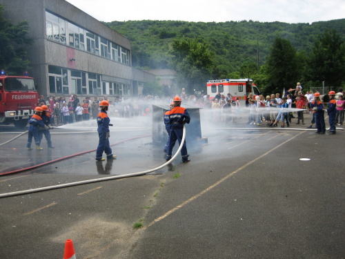 Die Freiwillige Feuerwehr Lorch, das THW und der ASB waren mit vielen Spielen und Vorführungen, den ganzen Tag am Schulfest vertreten. Beim THW Beispielsweise, durften die Kinder testen, wie gut sie ihren Körper im Gleichgewicht halten können, indem sie an einem Kran gesichert, auf Getränkekisten in die Höhe klettern konnten. Der ASB startete einen Malwettbewerb, allerdings nicht auf normales Papier, sondern auf Stofflaken, die besten Bilder erhielten schöne Preise. Mit einer Rettungsübung zeigte der ASB, einen kleinen Ausschnitt aus ihrer Arbeit was sie täglich leisten müssen. Die Aktiven und die Mitglieder der Jugendfeuerwehr der Freiwillige Feuerwehr Lorch, boten den Kindern einen Spielpaqur inklusive Fragebogens an. Dabei konnten die Kinder ihre Geschicklichkeit und ihr Wissen über die Jugendfeuerwehr unter beweis stellen. Die besten Drei der jeweiligen Altersklasse wurden mit Preisen belohnt. Außerdem wurde von der Feuerwehr ein Malwettbewerb veranstaltet, die besten Bilder, werden am Tag der offenen Tür, der Feuerwehr Lorch ausgezeichnet und mit allen anderen gemalten Bildern ausgestellt. Gegen ende des Schulfestes hatte dann die Jugendfeuerwehr aus Lorch, noch ihren großen Auftritt und führte eine Angriffsübung, nach FWDV 3 durch. Bei der Übung konnten die Jugendlichen zeigen, was sie bisher in der Jugendfeuerwehr gelernt haben |