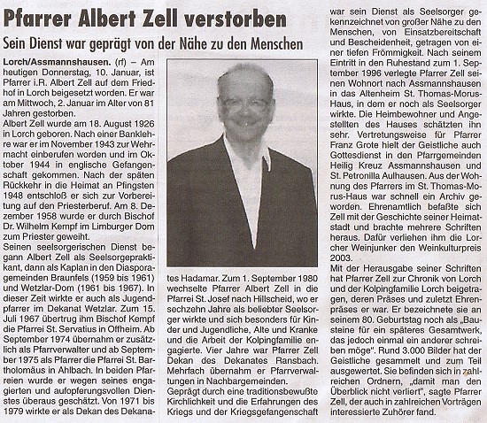 des Trauerzuges von Pfarrer i.R. Albert Zell