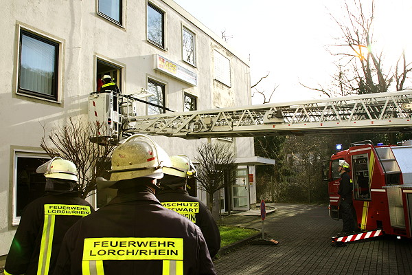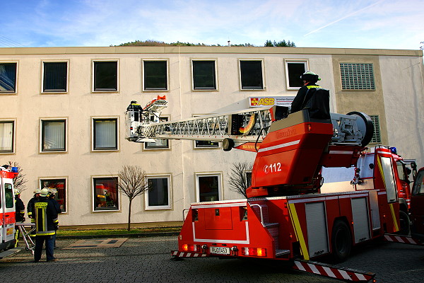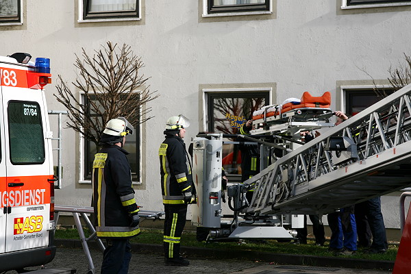 Gemeldet: Personenrettung mit der Drehleiter Person über Drehleiter gerettet, dem Rettungsdienst übergeben. |