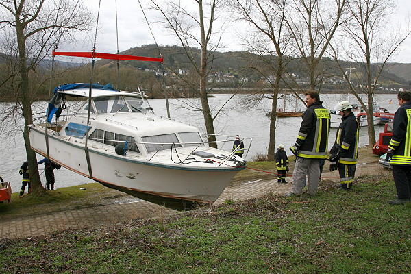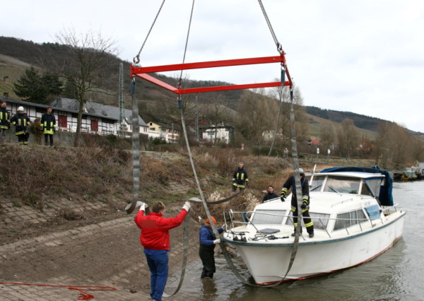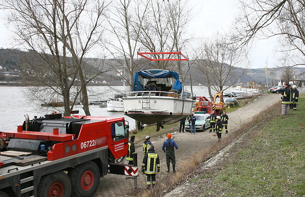 durch eine Spezialfirma geborgen. Die Feuerwehr Lorch wurde erneut durch die Wasserschutzpolizei Rüdesheim angefordert um das Boot auszupumpen und die Bergung zu unterstützen.