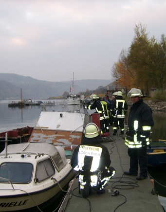 03.11.2007 Um 16 Uhr 23 wurde die Feuerwehr Lorch zum Auspumpen eines Sportbootes alarmiert. Das Boot war aus bisher ungeklärter Ursache am Steiger voll Wasser gelaufen und gesunken. Da Betriebsstoffe austraten empfahl die Wasserschutzpolizei das Boot auszupumpen und mit Hilfe eines anderen Bootes zu Heben. Es mußten drei Tauchpumpen eingesetzt werden um das Boot wieder zum schwimmen zu bringen. Danach wurde das Boot an Land gezogen um es dann durch einen Kran aus dem Wasser zu heben.