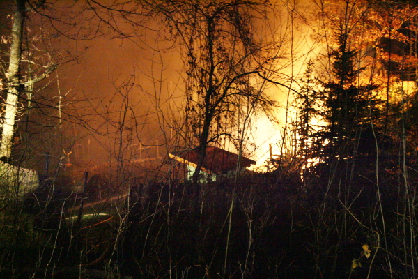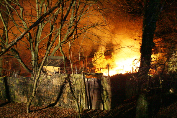 Trotz schnellem eingreifen der Feuerwehr brannte die eine Hütte bis auf die Grundmauern nieder. An der zweiten Hütte entstand sehr hoher Sachschaden.