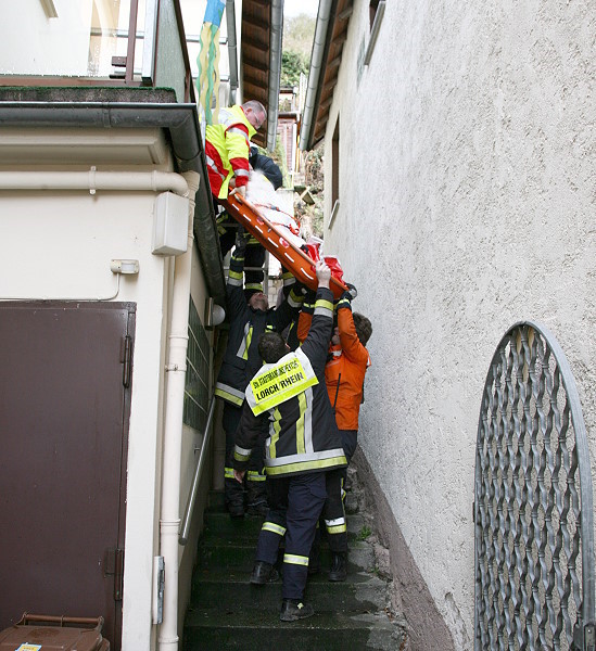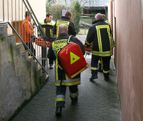 Kräfte: Lorch 11 Bes.1/0 mit Lorch 02 Lorch 43 Bes.1/4 Lorch 19 Bes. 1/0 mit der Schleifkorbtrage