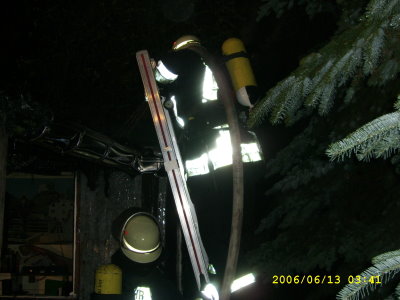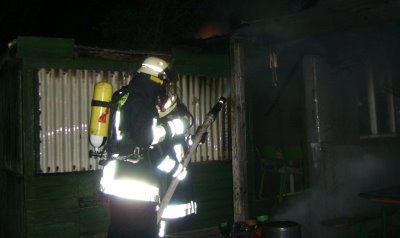 Brand eines Gartenhauses Bei Eintreffen der Feuerwehr brannte das Dach des Gartenhausses in voller Ausdehnung. Ein Trupp unter Atemschutz löschte das Haus ab und suchte unter der Dachdämmung nach weiteren Glutnestern.