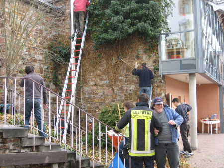 unterstützen die Eltern und Mitarbeiter des Kindergartens Lorch bei der Bewuchsentfernung